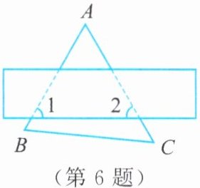 6. 在 $ \triangle ABC $ 中,$ \angle B = 65^{\circ} $,$ \angle C = 55^{\circ} $。现将一把直尺叠放在 $ \triangle ABC $ 上(如图),直尺的一边分别与 $ \triangle ABC $ 的边 $ AB $,$ AC $ 相交形成 $ \angle 1 $,$ \angle 2 $。