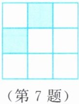 7. 如图是由两个阴影小正方形组成的图案。请你在空白网格中补画一个阴影小正方形,使补画后的三个阴影小正方形组成的图案为轴对称图形,共有