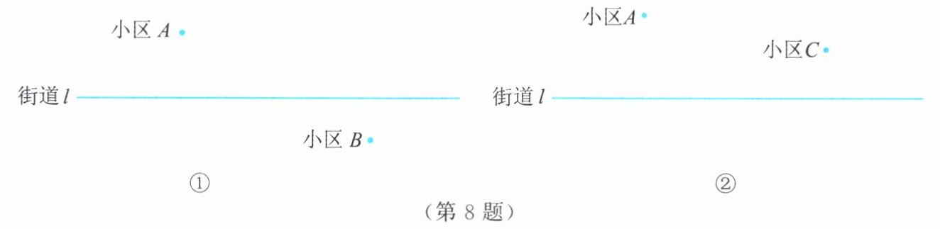 8. 如图,要在街道$l上修建一个牛奶售卖点D$。(街道用直线$l$表示)