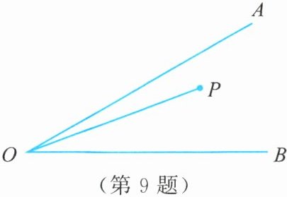 9. 如图,$P是锐角\angle AOB$内一点。在$\angle AOB的两边上找C$,$D$两点,使得$\triangle PCD$的周长最小。(保留作图痕迹,不写作法)