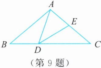 9. 如图,在 $ \triangle ABC $ 中,$ AB = AC $,$ \angle BAC = 100° $。点 $ D $ 在线段 $ BC $ 上运动(不与点 $ B $,$ C $ 重合),连结 $ AD $,作 $ \angle ADE = \angle B $,$ DE $ 交线段 $ AC $ 于点 $ E $。若 $ \triangle ADE $ 为等腰三角形,则 $ \angle BAD $ 的度数是