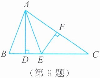 9. 如图,在△ABC中,AD⊥BC,EF垂直平分AC,交AC于点F,交BC于点E,且AE= AB。