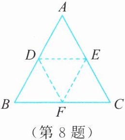 8. 如图,折叠一张三角形纸片$ABC$,使点$A落在BC边上的点F$,且折痕$DE// BC$。