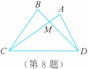 8. 如图,在 $ \triangle ACD $ 和 $ \triangle BCD $ 中,边 $ AC $,$ BD $ 交于点 $ M $。