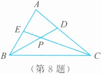 8. 如图,在$\triangle ABC$中,$\angle ABC$,$\angle ACB的平分线BD$,$CE交于点P$。
