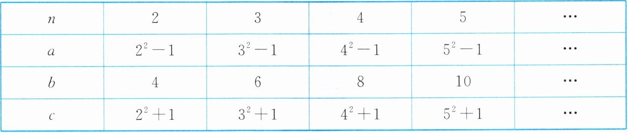 (1) 观察$a$,$b$,$c与n$之间的关系,用含自然数$n(n > 1)$的代数式表示: