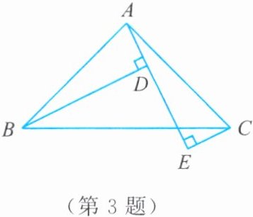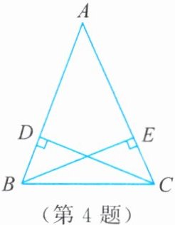 4. 已知:如图,$BE$,$CD$ 分别是 $\triangle ABC$ 的高线,且 $BD = CE$。求证:$\triangle ABC$ 为等腰三角形。