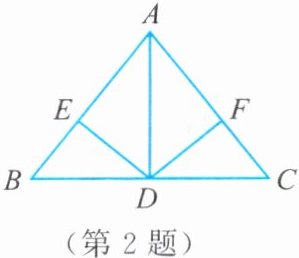 2. 如图,在 $\triangle ABC$ 中,$AB = AC$,$AD$ 是 $\triangle ABC$ 的角平分线,$DE \perp AB$,$DF \perp AC$,垂足分别是 $E$,$F$。下列结论中,不正确的是(