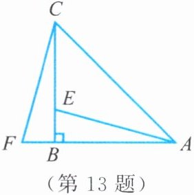 13. 如图,在$\triangle ABC$中,$AB = CB$,$\angle ABC = 90^{\circ}$。$F为AB$延长线上一点,点$E在BC$上,且$BE = BF$。
