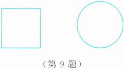 9. 如图,用两根长度均为$l(cm)$的绳子分别围成一个正方形和一个圆。