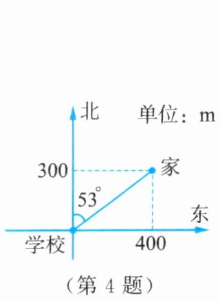 4. 小明的学校和家的位置如图所示。小明家相对于学校的位置可用下面方法表示。