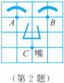 2. 如图是丁丁画的一张脸的示意图。若$(0,4)$表示眼睛 $ A $,$(4,4)$表示眼睛 $ B $,则嘴 $ C $ 的位置表示为
