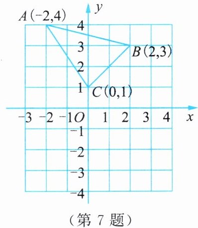 7. 如图,已知 $ \triangle ABC $ 在直角坐标系中,将 $ \triangle ABC $ 各顶点的纵坐标分别乘 $ -1 $,横坐标不变,得点 $ A',B',C' $。