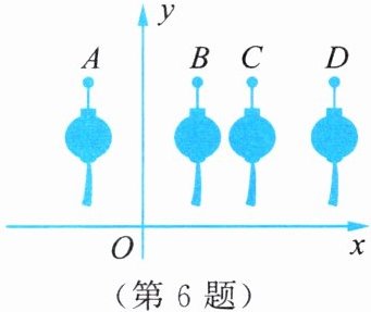 6. 如图,四盏灯笼的位置 $ A,B,C,D $ 的坐标分别是 $ (-1,b),(1,b),(2,b),(3.5,b) $。平移 $ y $ 轴右侧的一盏灯笼,使得两侧的灯笼关于 $ y $ 轴对称,则平移的方法可以是(