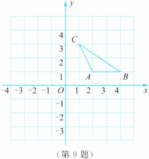 9. 如图,在直角坐标系中,$\triangle ABC的顶点坐标分别为A(2,1)$,$B(4,1)$,$C(1,3)$。