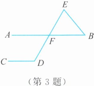 3. 如图,$AB// CD$,$DE交AB于点F$。若$\angle D = 120^{\circ}$,$\angle B = 50^{\circ}$,则$\angle E$的度数是