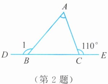 2. 如图,在$\triangle ABC$中,$\angle A = 60^{\circ}$,外角$\angle ACE = 110^{\circ}$,则外角$\angle 1$的度数是