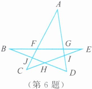 因为∠A+∠C=∠DIH,∠B+∠E=∠DHI,所以∠A+∠B+∠C+∠D +∠E=∠DIH+∠DHI+∠D=180°