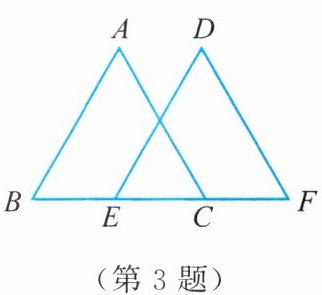 3. 如图,已知△ABC≌△DEF,点A与点D,点B与点E,点C与点F分别是对应顶点。