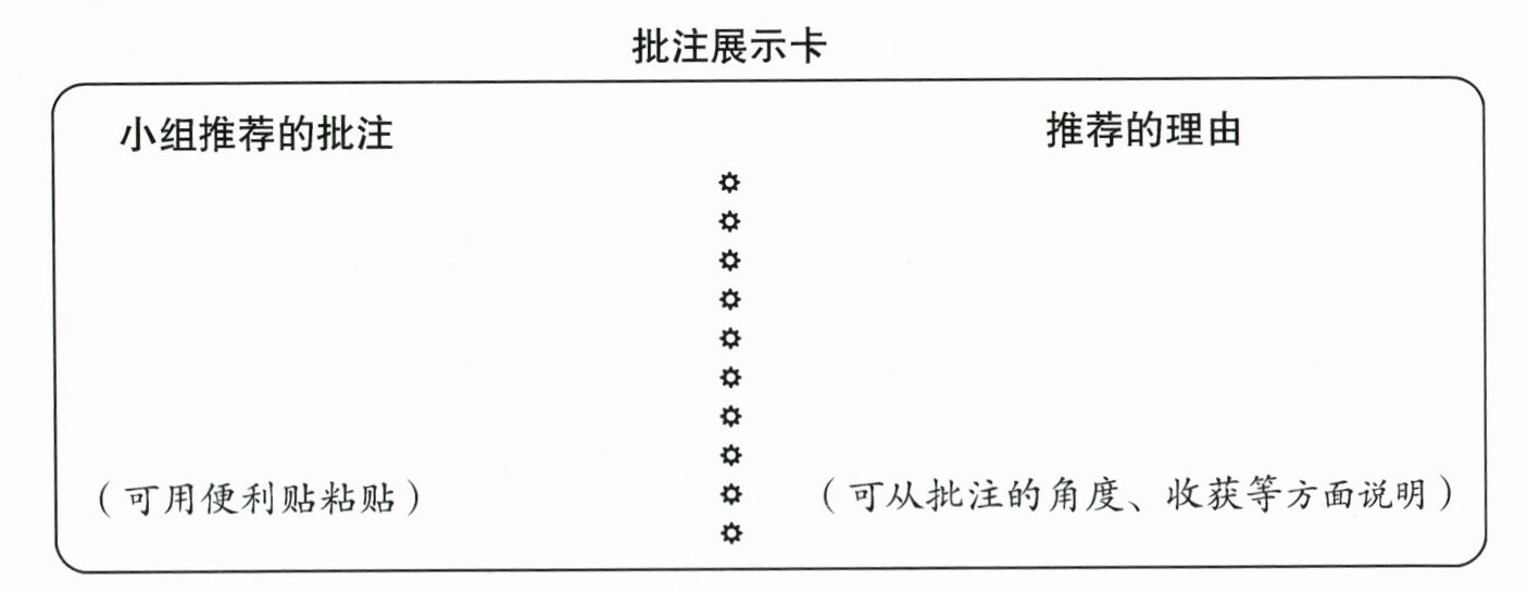 7. 最近,我们在阅读神话故事时,也作了批注。请选择自己最满意的一处批注,先组内交流,再合作完成"批注展示卡",在全班展示。