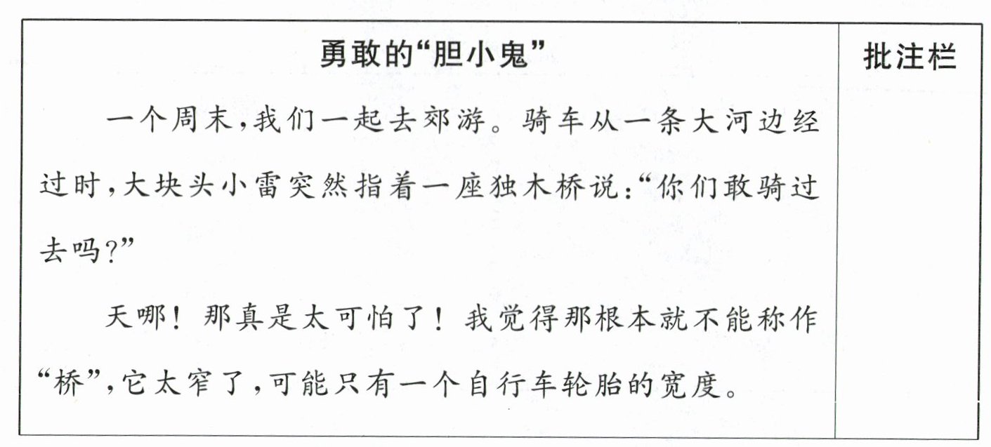 6. 经过一段时间的学习,我们基本掌握了批注的阅读方法。默读《勇敢的"胆小鬼"》,试着从不同的角度批注,写在批注栏中。