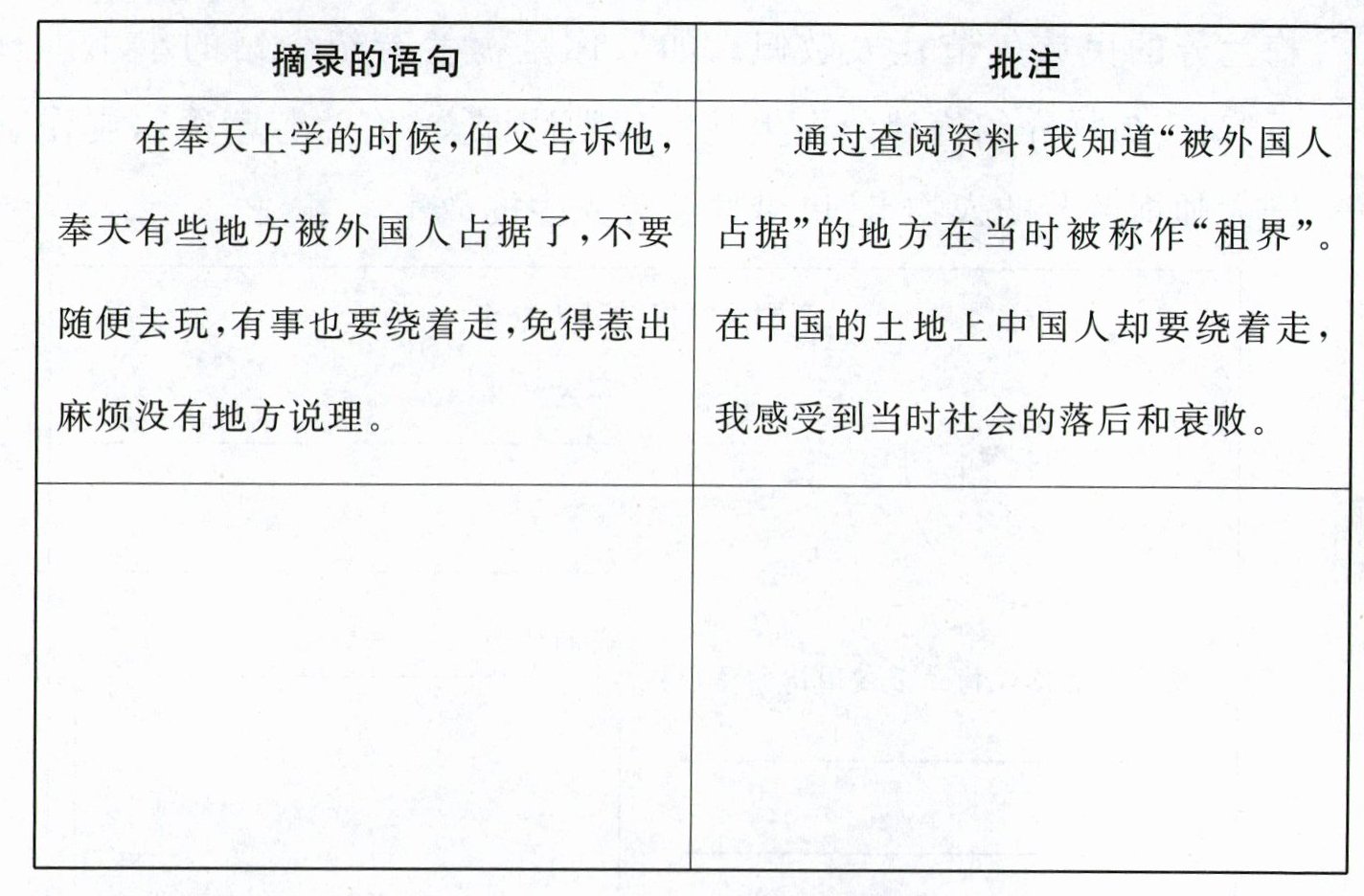5. 默读课文《为中华之崛起而读书》第11—17自然段,照样子摘录体现“中华不振”的语句。结合课前搜集的资料和教科书第98页第2题周恩来写的诗,批注自己的感受,说说周恩来立志的原因。