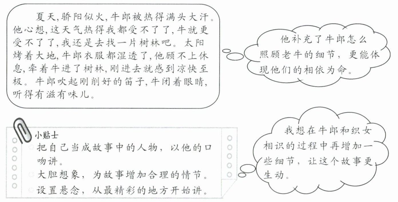 5.下面是某同学对《牛郎织女》这个故事中牛郎照顾老牛的情节进行的创造性复述。请