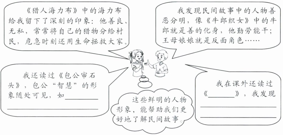 (2)民间故事中鲜明的人物形象,可以帮助我们更好地讲好故事,在小组内分享