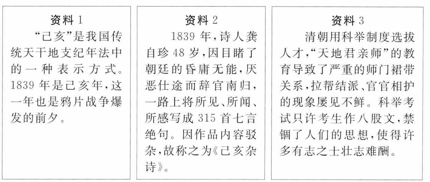 (3)结合相关资料,体会《己亥杂诗》表达的情感。