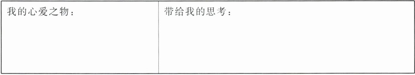 7. 你的心爱之物是不是也像“落花生”那样带给你一些思考?或是让你像作家冯骥才那样在与珍珠鸟相处的过程中产生一些感悟?如果有,请把你的思考写在表格中。