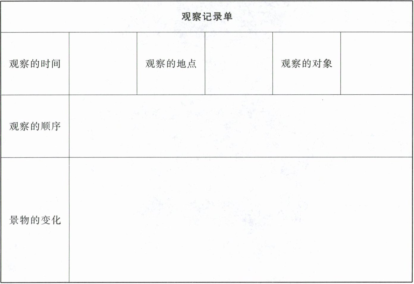 |观察的顺序|时间顺序(按日出前、日出时、日出后的变化记录)| | | | |