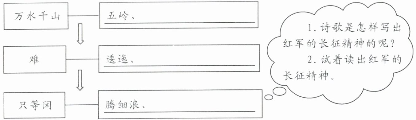 1.诵读《七律·长征》,填一填,感受红军的长征精神。