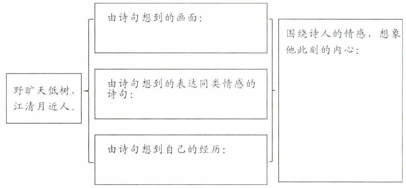 围绕诗人的情感,想象他此刻的内心:漂泊在外,科举失意,这空旷的原野让我更觉孤独,唯有江上明月与我相伴,愁绪满怀却又稍得慰藉。