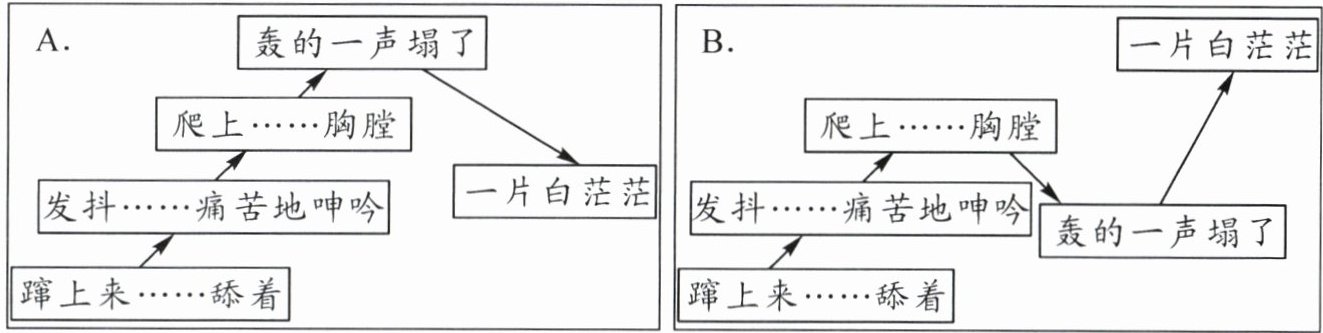1. 环境;①生动形象地写出洪水上涨的迅猛;②赋予洪水人的动作,突出其肆虐;木桥开始发抖,开始痛苦地呻吟;B