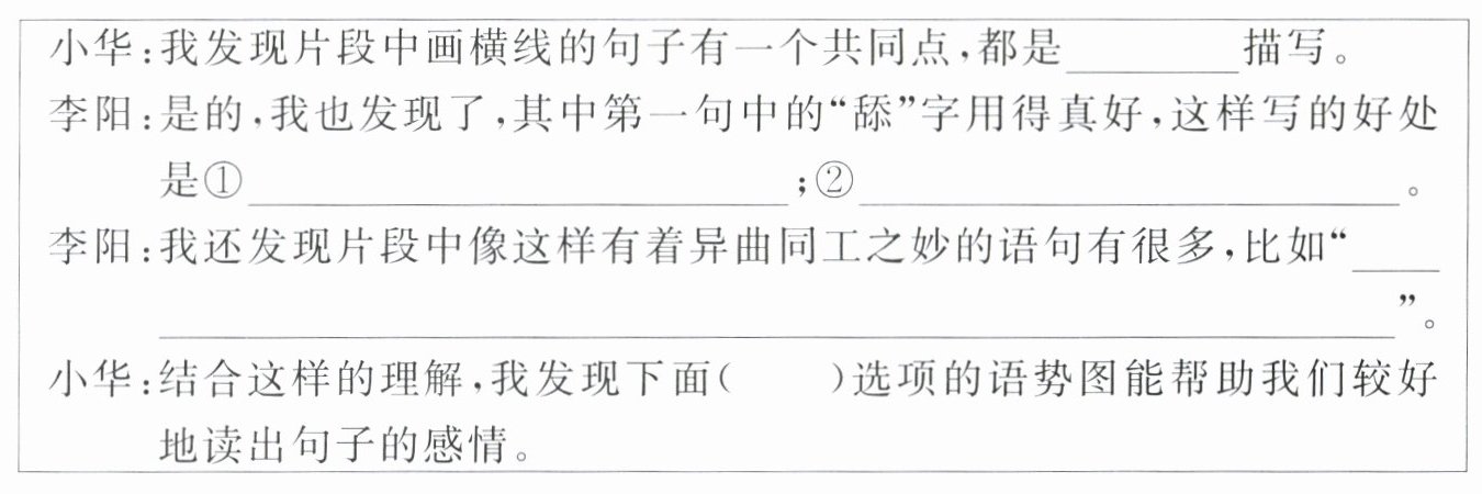 3. 片段中写道:"老汉似乎要喊什么,猛然间,一个浪头也吞没了他。"结合课文内容想一想,老汉在最后会喊什么?写在下面的横线上。