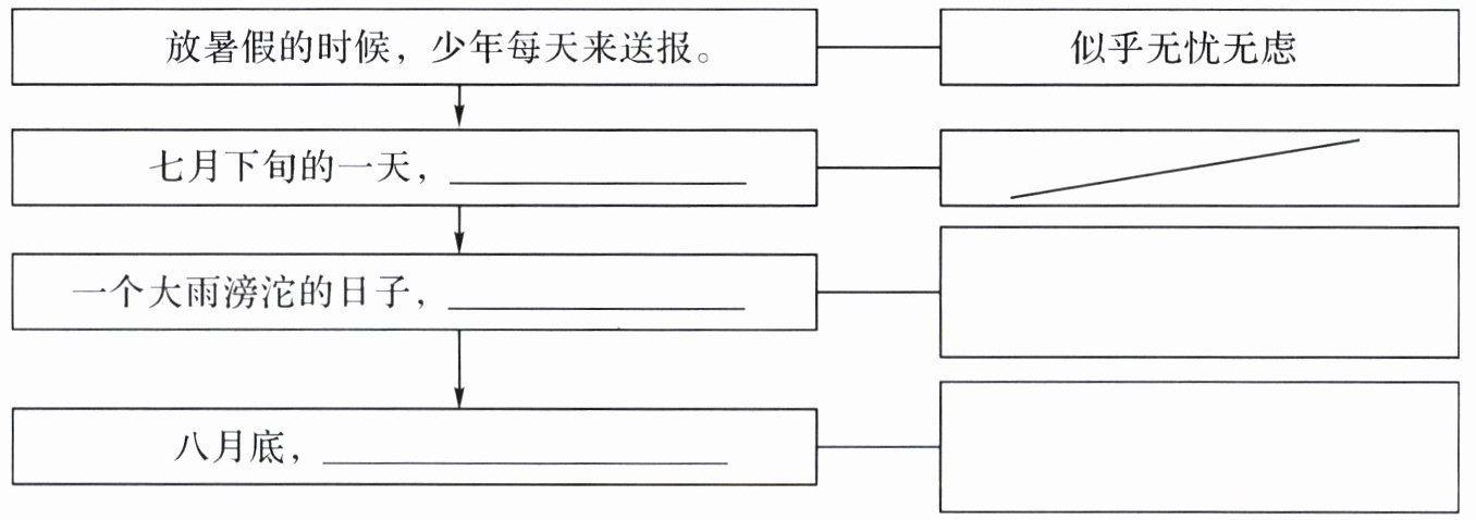 1. | 放暑假的时候,少年每天来送报。 | 似乎无忧无虑 |