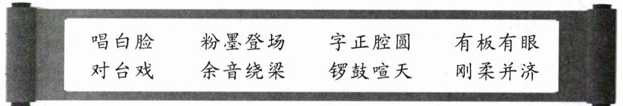 (2)任选下面一个与京剧有关的词语,结合《京剧趣谈》中学到的方法,展开想象,写写词语中的动态、静态的画面或是动静结合的画面。