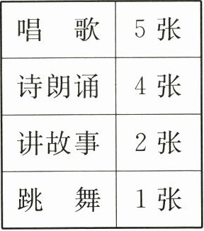 因为$4>2$,$4 > 1$,所以抽到诗朗诵的可能性比抽到讲故事和跳舞的可能性大。