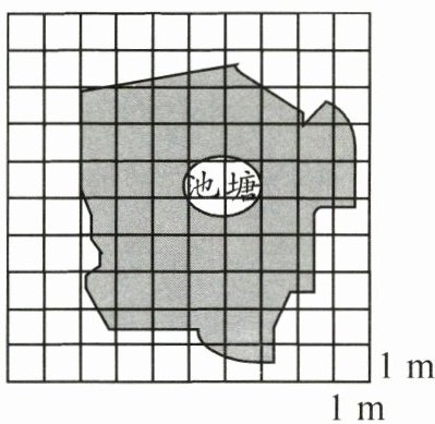 可通过数方格的方法估算池塘面积,满格有 22 格,不满格有 18 格,不满格按半格计算,则池塘面积大约为:$22×1 + 18×0.5 = 22 + 9 = 31$(平方米)。