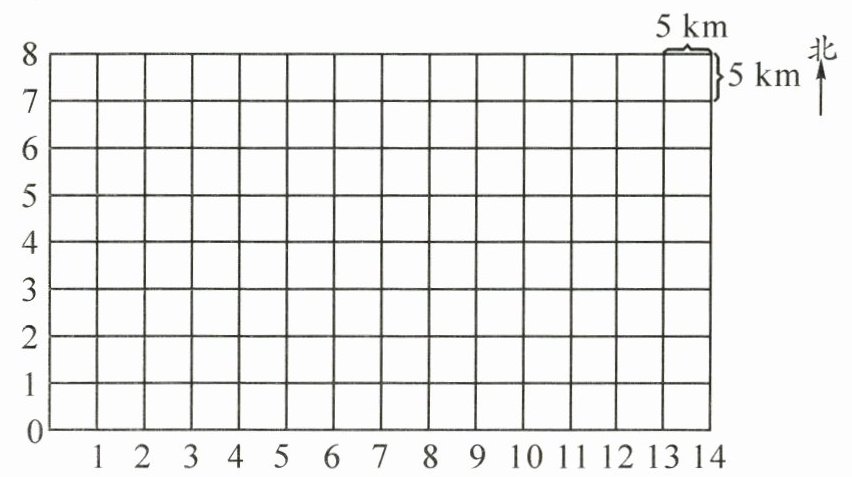 1. 如图,一辆汽车从(1,2)出发,先向东行驶到(13,2),再向北行驶25 km,到达目的地。