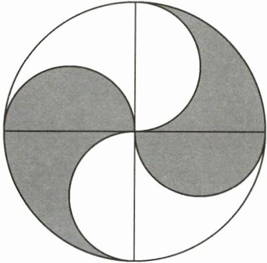 由图可知,大圆半径$ R = 2 $厘米,阴影部分由4个半径为$ r=\frac{R}{2}=1 $厘米的半圆组成。