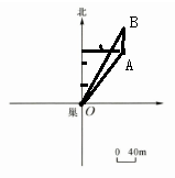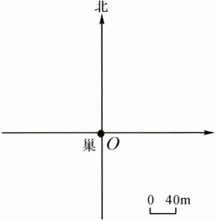 2. 一只乌鸦从巢(O 点)出发,先向正北方向飞了 100 米,再向正东方向飞了 80 米,到达 A 点。在 A 点吃了些谷物后,向正北方向飞 40 米到达 B 点,又吃了一些谷物,之后立即返巢,连接两处觅食点与巢,构成了三角形 OAB。