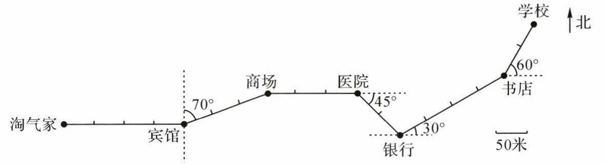 填空题:东,150,宾馆,北,东,70°,东,南,东,45°;