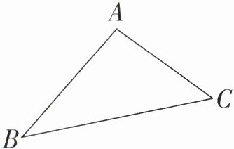 用圆规量得三条边长度比较结果:$AC(或$AB$,若量得$AB$较长) < AB(或$AC$) < BC$(以实际测量长短为准,假设量得$BC$最长,$AB$次之,$AC$最短的反例调整不符合题设,按题设应量出$BC$边为最长,另两边中$AB$或$AC$的次序按测量),实际按测量长→短排序: