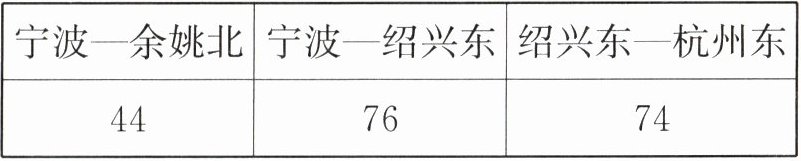 )千米,余姚北到杭州东的里程是(106