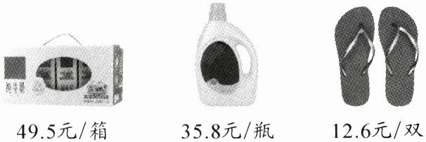 2. 妈妈带 250 元去超市购物。买了 2 箱牛奶,3 瓶洗衣液,剩下的钱够买一双拖鞋吗?