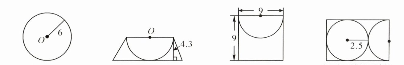 5. 一个半圆,半径是 $ r $,它的周长是(