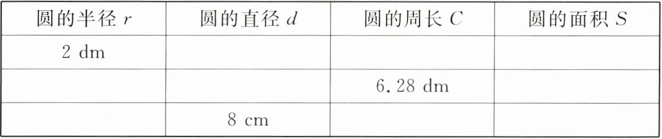 | 1dm | 2dm | 6.28 dm | 3.14$dm^{2}$ |