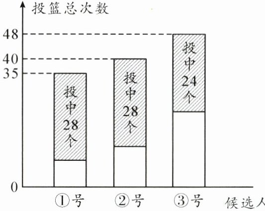2. 在六年级“篮球神投手”评比中,三位候选人 1 分钟定点投篮成绩如图。