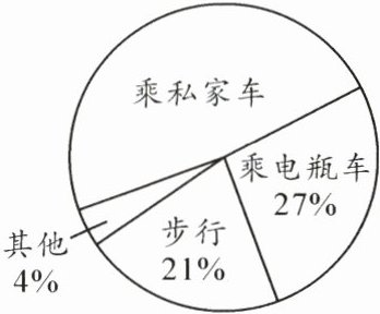 乘私家车人数:$1500 × (1 - 21\% - 27\% - 4\%) = 1500 × 48\% = 1500 × 0.48 = 720$(人),